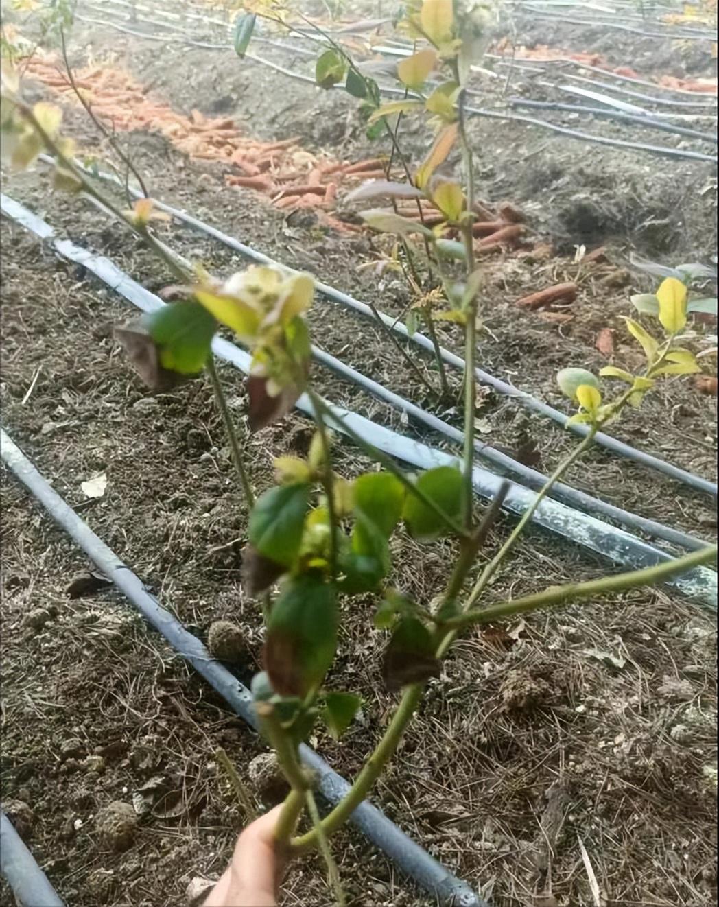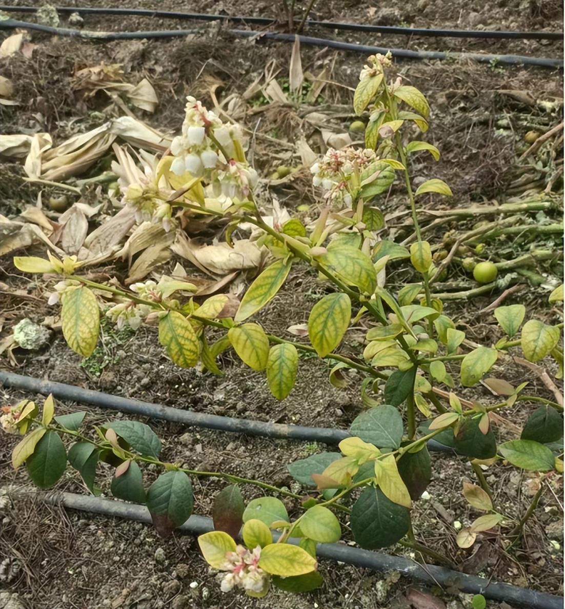 土壤改良不到位:蓝莓种植对土壤要求高,土壤pH值过酸过碱、有机质含量低、微生态失衡等都不利于蓝莓的生长,使得蓝莓发黄长势差。