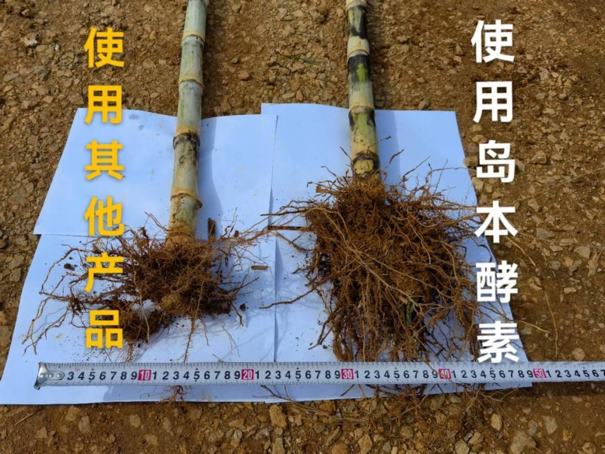 应用效果:应用岛本酵素菌肥的甘蔗根系强,长势壮,抗性强,抗旱抗涝能力明显增强,口感也得到显著提升。