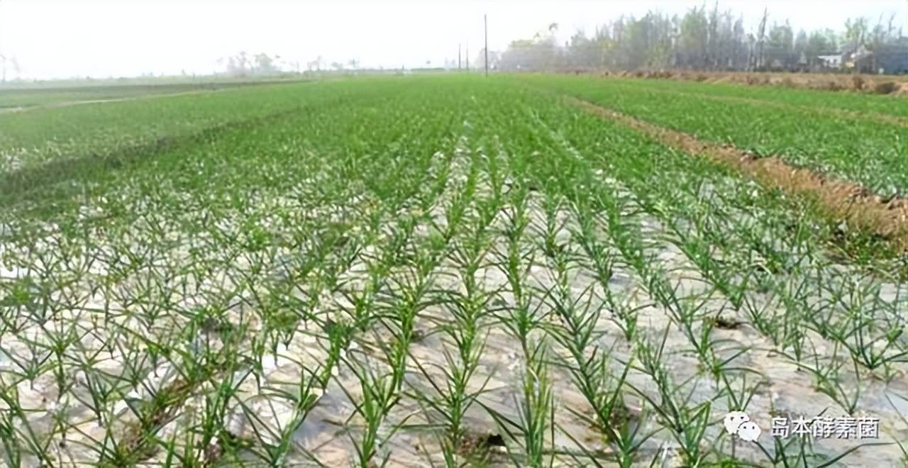 2、追肥应分次进行。秋播大蒜3~4期,当假茎高10厘米左右时,可追施一次岛本酵素菌根菌,每亩用量2.5-5升,随水冲施,对于养根护根,苗齐苗快十分有利。
