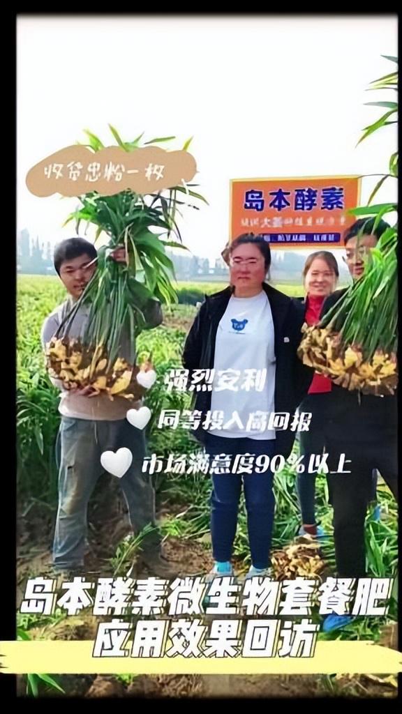 潍坊昌邑市饮马镇大谢家庄村谢大哥应用岛本酵素微生物套餐肥已经是第4个年头了,出姜效果一直挺好,同等投入高回报,后期继续使用。