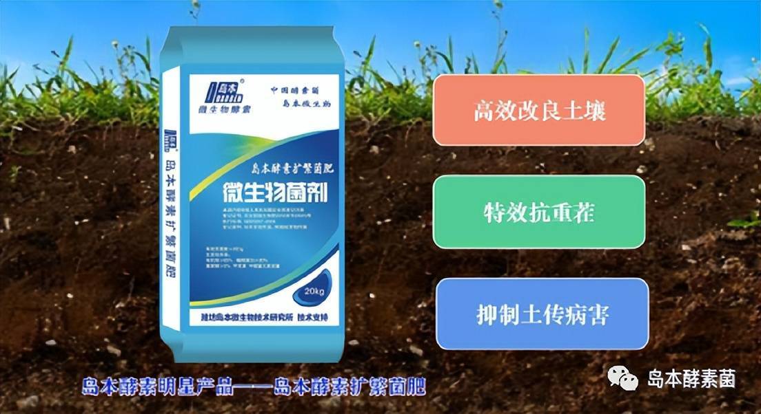 岛本酵素微生物套餐肥,提供作物全程营养与生物防护,从土壤、根系、空气全方位改善作物微生态,形成有益微生态微循环,从整体上解决重茬问题,助力农业高质量发展。
