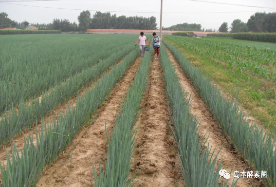 2.壮苗:在定植播种后,葱苗长至1叶1心或2叶1心时随水冲施岛本酵素菌根菌5千克,促生根发根,苗健苗壮。