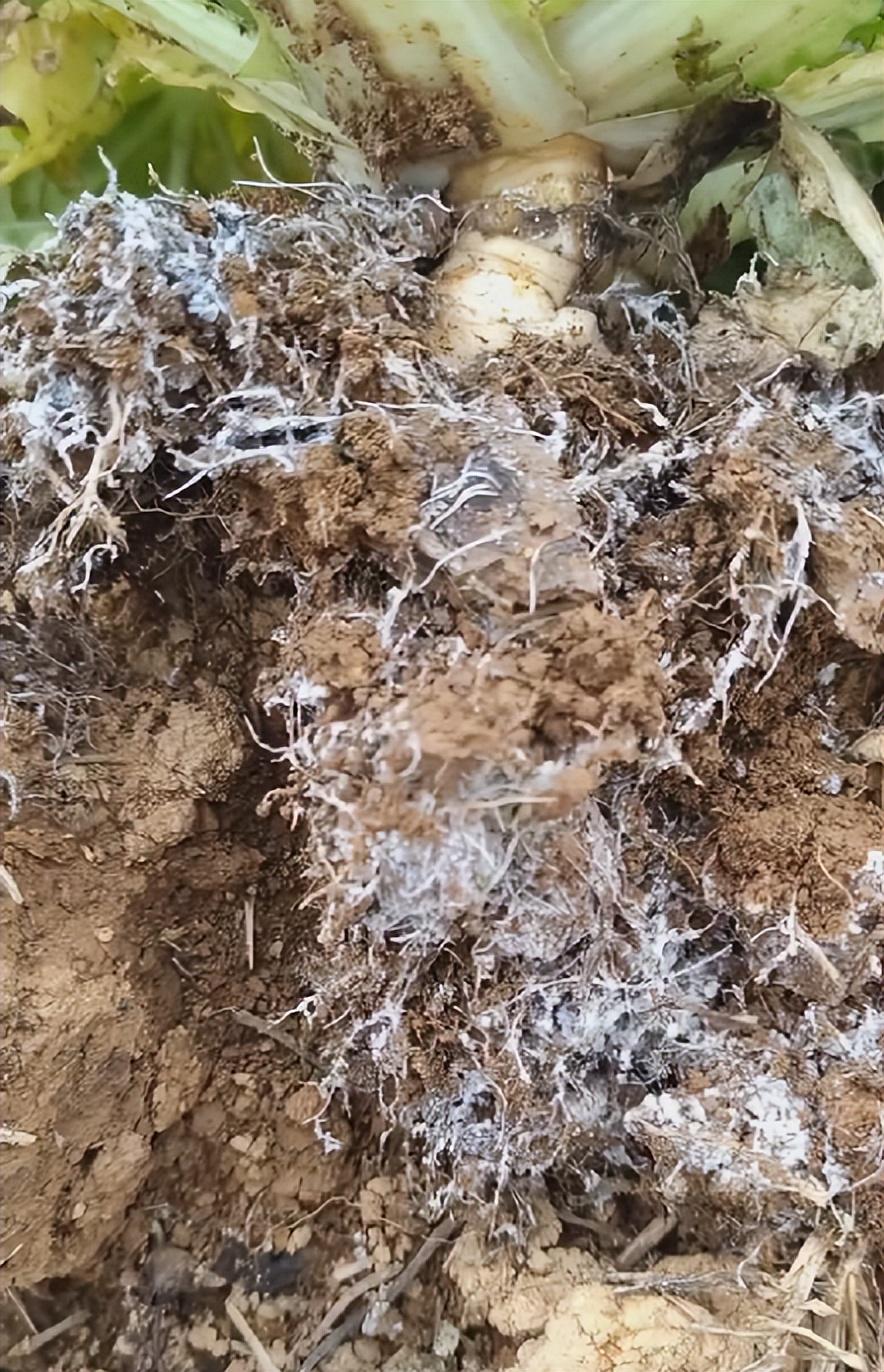 感谢客户的用心反馈!那么究竟为什么使用岛本酵素发酵微生物肥可以让白菜在干旱190多天的情况下依然奇迹存活的?是因为它的强抗逆性及菌根。通过图片可以很明显看到白菜上长了很多白色菌丝,这些菌丝与根系形成一体(也就是菌根),辅助根系汲取水分和养分,才能让作物在如此逆境之下依然存活。