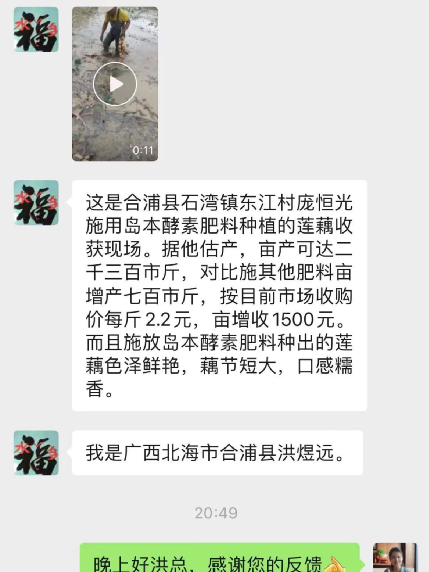 这是近期客户反馈岛本酵素在莲藕上的应用效果!