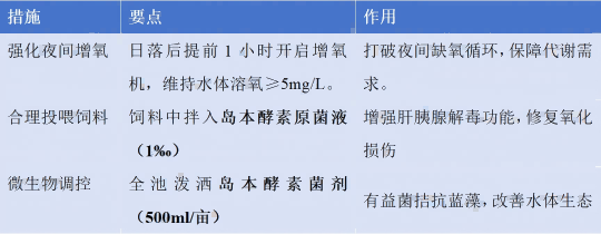 (1)预防为主:每日巡塘重点关注油膜、气泡、虾群行为三大指标