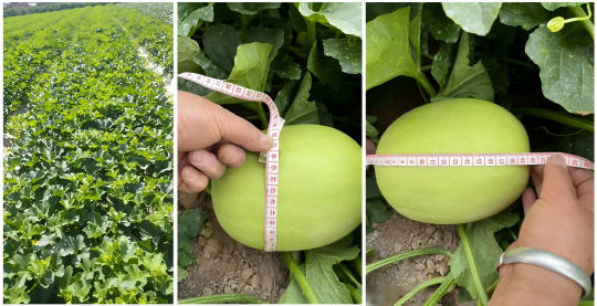 效果体现:产出的蜜瓜果型端正、大小均匀、色泽亮丽;糖度(可溶性固形物含量)显著提升且稳定,普遍高出常规种植1-3度;果肉细腻,汁水丰盈,风味浓郁纯正,香气突出。商品果率大幅提高,完美契合高端市场需求。
